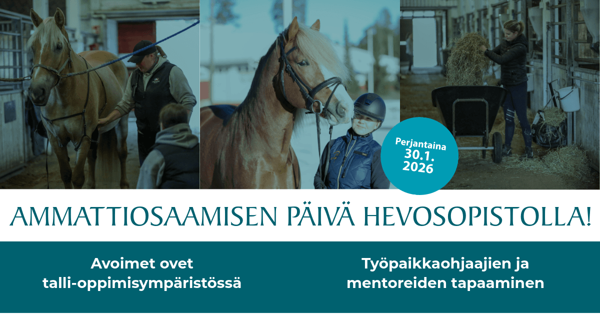 Hevosopistolla vietetään perjantaina 30.1.2026 Ammattiosaamisen päivää, jonka tavoitteena on nostaa esiin ammatillisen koulutuksen merkitys, osaamisen laatu sekä tulevaisuuden työelämätaidot.